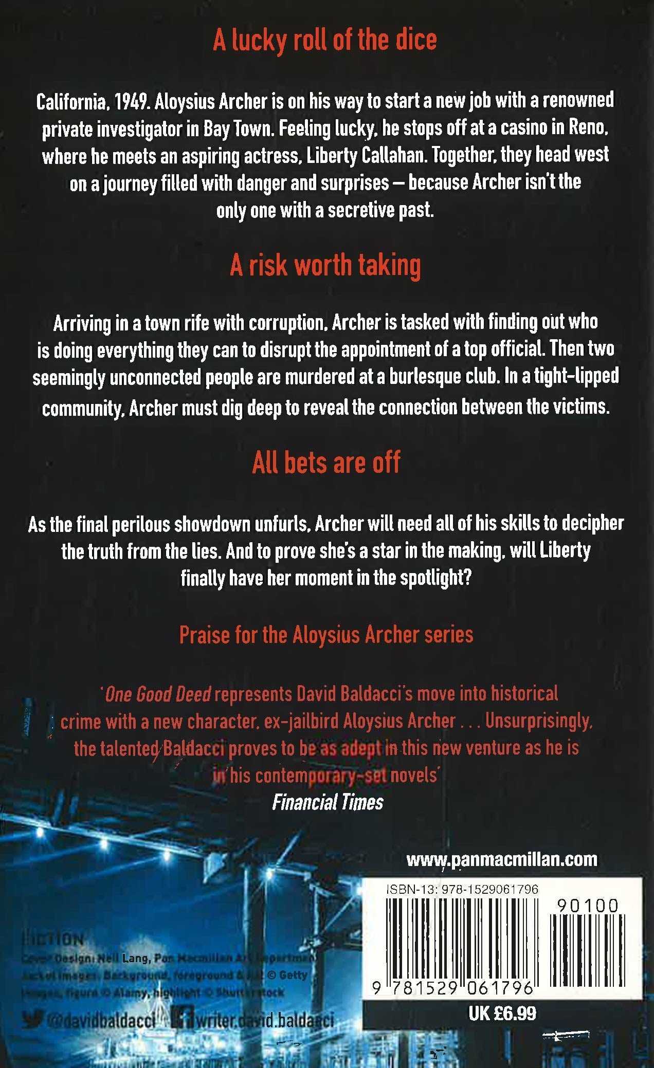 A Gambling Man by David Baldacci is a gripping historical crime thriller set in 1949, featuring the fearless private investigator Aloysius Archer. After serving time in prison, Archer sets out west, determined to start fresh in California. Along the way, he teams up with aspiring actress Liberty Callahan, but upon arriving in Bay Town, they discover a city riddled with corruption, danger, and dark secrets. Baldacci weaves suspense and noir flair, bringing post-war America to life through gritty descriptions and a compelling plot. This is a must-read for fans of mystery, detective fiction, and richly atmospheric storytelling.