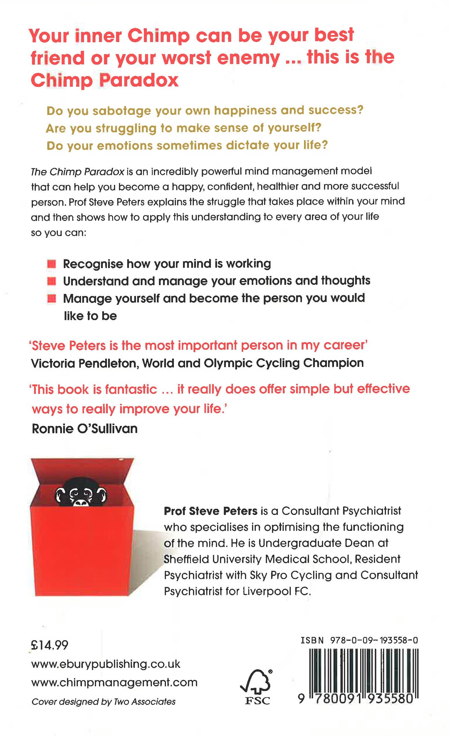 The Chimp Paradox by Dr. Steve Peters offers a mind management program based on the functioning of the brain, specifically the inner conflict between the emotional “chimp” and the logical human. Through engaging explanations and practical techniques, Peters reveals how the “chimp” can sabotage our happiness and success with impulsive reactions, fears, and insecurities. By learning how to recognize, understand, and manage the chimp brain, readers can improve self-control, communication, and emotional resilience. Used by elite athletes and professionals alike, this book is an essential guide to mastering your mind, overcoming anxiety, and achieving personal and professional goals more effectively.